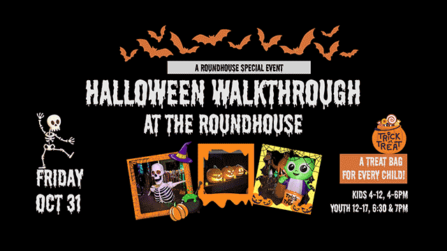 A poster for the Halloween Walkthrough at the Roundhouse Community Centre