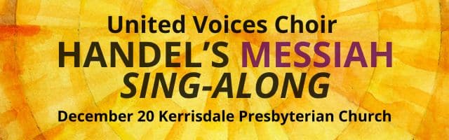 A banner ad for the United Voices Singalong Messiah Concert