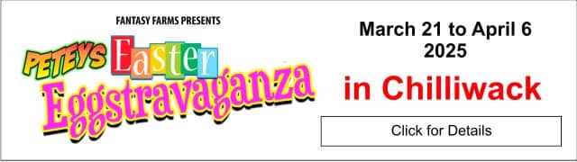 Home Petey’s Easter Eggstravaganza and More at Chilliwack’s Fantasy Farms Peteys Easter Eggstravaganza at Fantasy Farms Banner Ad