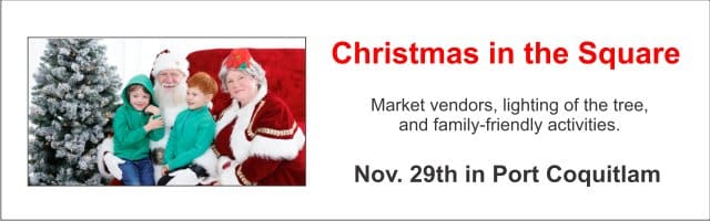 A banner ad for Christmas in the Square in Port Coquitlam